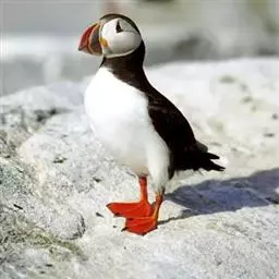 角嘴海雀,是海雀科、角嘴海雀属的中型海鸟,体长32-41厘米,嘴短而粗呈圆锥状、橙色。夏羽上嘴基部…