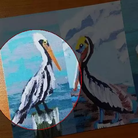 雌雄相似。成鸟上体白色,初级飞羽、外侧次级飞羽和尾羽黑色,具绿色金属光泽;内侧次级飞羽和三级飞羽淡红白色,羽缘和尖端粉红色;小覆羽、中覆羽黑色,具绿色金属光泽和宽阔的白色羽缘;肩羽和大覆羽玫瑰白色。下体白色。翼下覆羽和下胸宽阔的横带黑色,且具绿色光泽和白色羽缘。