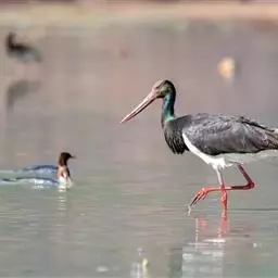 黑鹳是鹳形目鹳科鹳属鸟类,俗称乌鹳、钢鹳、老鹤。黑鹳头、颈和脊均呈黑褐色,故名黑鹳。…