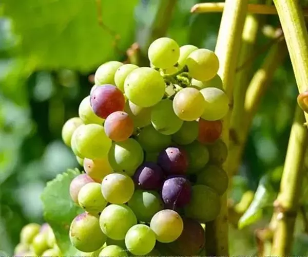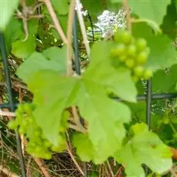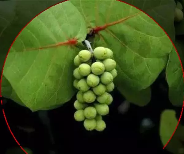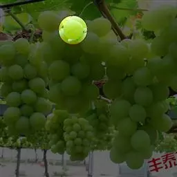 6、合理修枝与疏花疏果 采用单主蔓篱架,每析树留5-6枝,4串果,每串果控制质量在500-700克范围内,亩产量控制在2500公斤范围内。