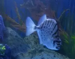 马夫鱼。成鱼体甚侧扁,背缘高而隆起,略呈三角形。背鳍鳍棘11根,第四鳍棘延长呈鞭状,鳍膜亦随之延长…