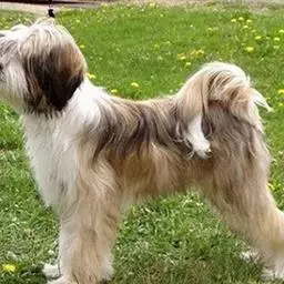拉萨犬是食肉目犬科犬属哺乳动物。头盖狭窄,黑色的鼻子及丰厚的长毛;两颊胡须及颚部胡须很长;厚实的耳朵下垂;眼古铜色,大小中等,椭圆状;身长比身高长,背部水平,腰部强健;被毛上毛长粗且直,下毛丰厚;沿着背骨,被毛左右清楚分开;四肢以足部由密集丰厚的长毛覆盖着;前肢直,后肢肌肉十分发达;足部坚挺呈圆形,肉趾特别厚;尾毛密集,尾跟高,尾巴朝上卷曲,毛尖容易纠结在一起。寿命为12-14年。拉萨犬原产于中国西藏,现广泛分布于世界各地。吃苦耐劳、个性独立友善、聪明自信、活泼热情、忠心耿耿且沉着冷静,但对陌生人有高度的警觉性。适合饲养在家庭中。不易训练。饲养管理上,需定时修剪会进入眼睛的毛;被毛需要经常擦拭和彻底梳理,以免显得脏污蓬乱。拉萨犬是西藏地区四大名犬之一。1934年,拉萨犬被认定为独立品种。据说饲养此犬者可以增福和驱魔,以前又称“驱魔圣犬”,现在则是非常理想的家庭犬。