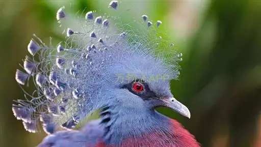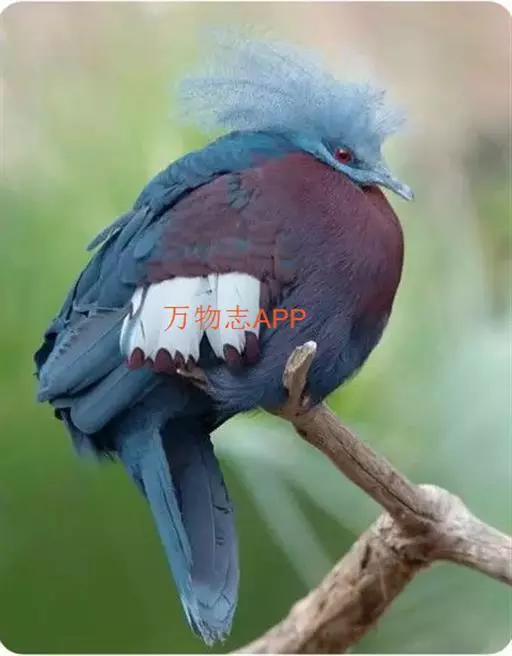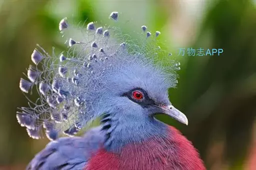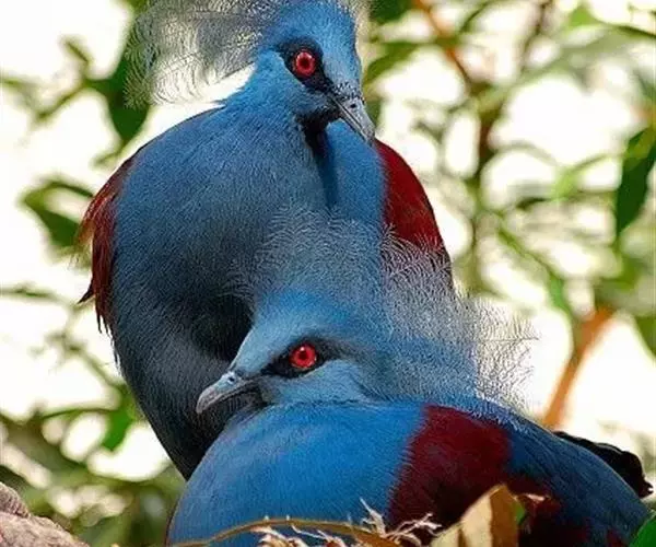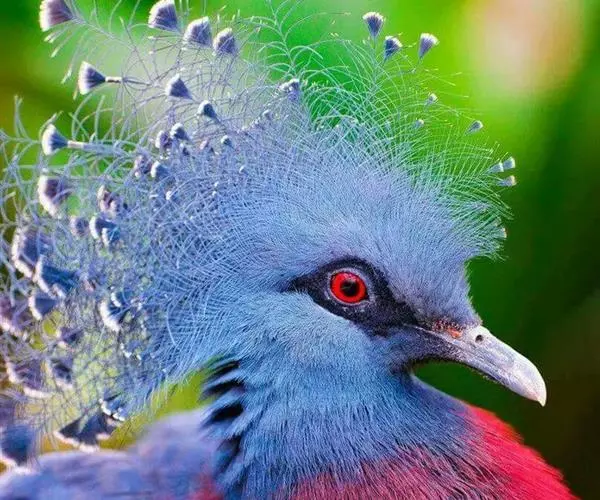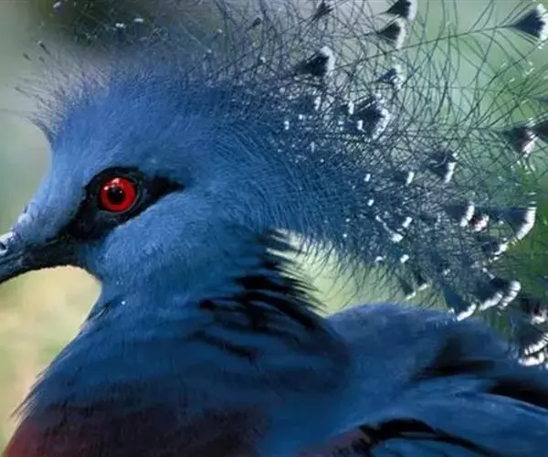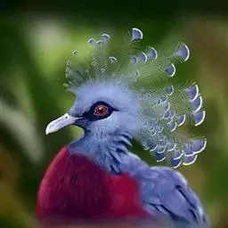 蓝凤冠鸠(学名:Goura cristata)是鸠鸽类中最漂亮的成员,也是鸽鸠类中体型最大的一种,几乎和火鸡一般大。蓝凤冠鸠通体呈蓝色,羽毛光滑而整洁,在尾部和翅下分别有一块白色区域,翅膀中部部分至前胸略呈紫色,红色的眼睛炯炯有神,眼睛周围的羽毛颜色较深,腿部还长有小斑点。