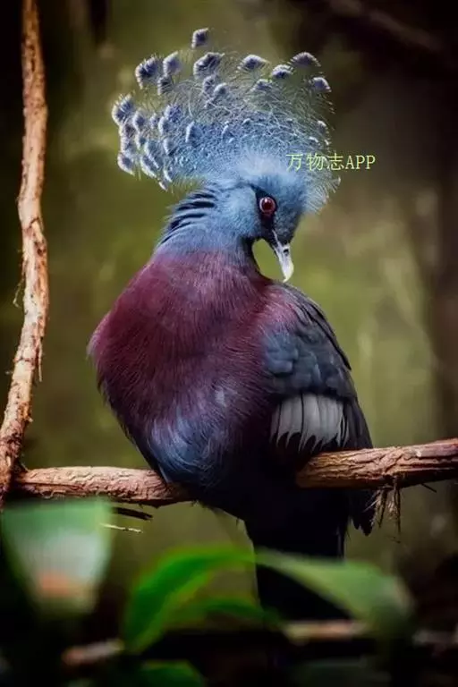 蓝凤冠鸠常栖息在近水的森林或沼泽地区,成小群徘徊觅食。习性如雉鸡一般。主食各种植物的种子,果实及昆虫等。分布于印度尼西亚各岛屿。