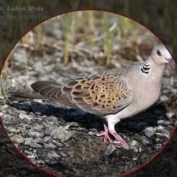 山斑鸠,是鸽形目鸽鸠科斑鸠属鸟类,又名金背斑鸠、棕背斑鸠、山鸠、金背鸠、麒麟斑、麒麟鸠、东方斑鸠、绿斑鸠、山鸽子。山斑鸠颈侧具明显黑白色条纹的块状斑,上体深褐色、具扇贝状斑纹,羽缘棕色,尾羽近黑色,下体多偏粉色。虹膜黄色,喙灰色,脚粉色。山斑鸠是留鸟,在中国常见且分布广泛。此外,还分布于不丹、尼泊尔、巴基斯坦、印度、日本等国。栖息于针阔混交林、季风常绿阔叶林、果园及农耕区,多成对活动于开阔农耕区、村舍、寺院周围及防火林带。取食于地面,主要觅食植物种子、果实、嫩芽等,也吃昆虫。山斑鸠飞翔时鼓翼快速,叫声为反复而低沉的“咕咕咕”声。繁殖期在4-7月,营巢于林中树上,通常一年繁殖2窝,窝卵数2枚,由雌雄亲鸟轮流孵卵,孵化期18~19天。山斑鸠的肉、卵可食,肉入药可益气明目、强筋壮骨,治久病气虚、衰弱无力、两目昏暗等病症。山斑鸠啄食杂草种子,对农田清除杂草有益;但有时也刨食农作物及树的种子。山斑鸠