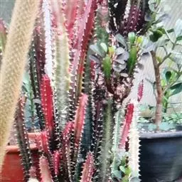 霸王鞭,是大戟科大戟属的多年生肉质灌木,全株含白色乳汁;茎直立,茎基部圆柱形,上部4~5纵棱,…