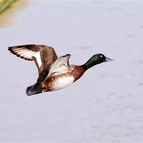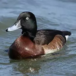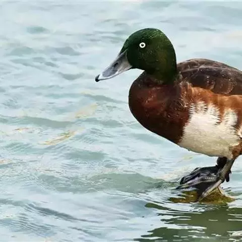 红头潜鸭(学名:Aythya ferina)体长42-49厘米,翼展72-82厘米,体重700-1100克,寿命10年。雄鸭头顶呈红褐色,圆形,胸部和肩部黑色,其他部分大都为淡棕色,翼镜大部呈白色。雌体大都呈淡棕色,翼灰色,腹部灰白。幼年雄鸭下部羽色较深,与雌体颇相似。雄体覆羽与雌性同,但头和颈部的红色比较浅些。眼鲜红色或红棕色;喙蓝黑色;脚青灰色或铅灰色;蹼关节和爪黑色。很少鸣叫,为深水鸟类,善于收拢翅膀潜水。杂食性,主要以水生植物和鱼虾贝壳类为食。有很好的潜水技能,在沿海或较大的湖泊越冬。繁殖于英国、斯堪的那维亚半岛南部、欧洲西伯利亚南部、蒙古和中国。越冬在欧洲南部、非洲北部、伊朗、阿富汗、巴基斯坦、印度、孟加拉国、缅甸、中南半岛、中国和日本等国家。