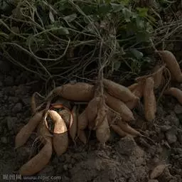 整枝搭架:薯蓣是攀缘植物,苗高30厘米前,必须搭架,架高1.5-1.7厘米,架材入土深20-30厘米。常搭成人字架或四角架。种块发芽时,一般可伸出1条主茎,但有时也可伸出2条以上,相应会产生2-3个块茎,相互争夺养分,使每个块茎又细又小,影响优质生产,应在出苗后,立即拔除多余的茎蔓,只留1个粗壮的主茎。有的品种侧枝过多,中后期要适当摘去下部侧枝,以及主茎与侧枝的顶头。零余子大量形成,影响块茎生长,一般可控制在1500-2250千克/公顷。
