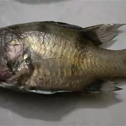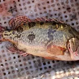体背部青黑色,具深蓝色不规则斑纹,斑纹延续至侧线下方,但不伸达腹部。侧线下部无蓝黑色小圆斑,腹部黄白色,头顶部黑色。背鳍、胸鳍和尾鳍灰黑色。