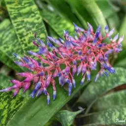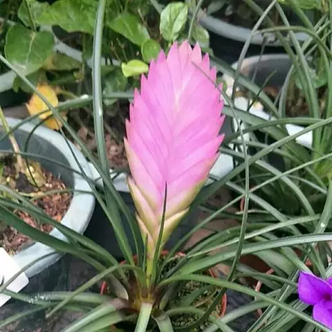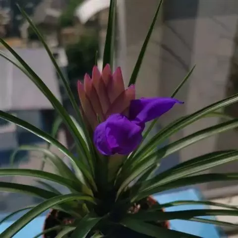 紫花凤梨,是凤梨科铁兰属的多年生草本植物。株高不及30厘米;叶片拱状线形,叶丛族生于短缩茎上,…