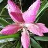 果子蔓 奥马尔·莫罗比(OmarMorobe),叶片中央具米白色宽纵纹,苞片橙红色,花粉红色。