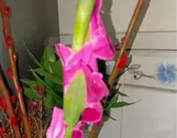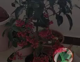 果子蔓 又名擎天凤梨、红杯凤梨、西洋凤梨,为多年生草本。叶长带状,浅绿色,背面微红,薄而光亮。穗状花序高出叶丛,花茎、苞片和基部的数枚叶片呈鲜红色。果子蔓叶片翠绿,光亮,深红色管状苞片,色彩艳丽持久,是目前世界花卉市场十分流行的盆栽花卉之一。果子蔓为花叶兼用之室内盆栽花卉,还可作切花用。既可观叶又可观花,适宜在明亮的室内窗边长年欣赏。