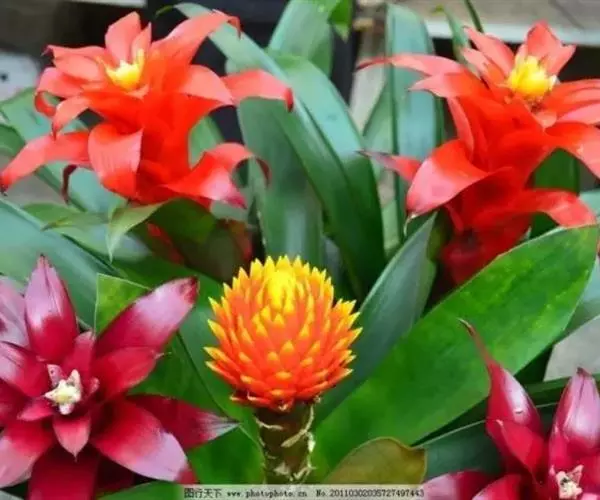 春、夏、秋三季:这三个季节是它的生长旺季,肥水管理按照“花宝”——“花宝”——清水——“花宝”——“花宝”——清水的顺序循环(最起码每周要保证两次“花宝”),间隔周期大约为:室外养护的1~4天,晴天或高温期间隔周期短些,阴雨天或低温期间隔周期长些或者不浇;放在室内养护的2~6天,浇水时间尽量安排在早晨温度较低的时候进行。最值得注意的是,浇肥或浇水时,要把肥水浇到莲座状叶筒中。夏季在早晨或傍晚温度低时浇灌,还要经常给植株喷雾。