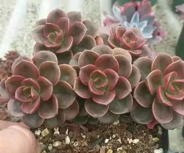 米洛可景天科拟石莲花属多肉植物。别名为巧克力方砖。