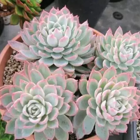 冰莓是景天科拟石莲属多肉植物。非常美的一种多肉植物,秋天的时候会变成桃红色,叶边有透明感,…