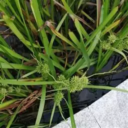 水莎草 多年生草本,散生。根状茎长。秆高35-100厘米,粗壮,扁三稜形,平滑。叶片少,短于秆或有时长于秆,宽3-10毫米,平滑,基部折合,上面平张,背面中肋呈龙骨状突起。