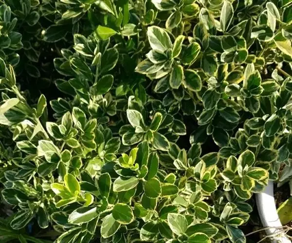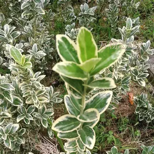 金边黄杨,又名:金边冬青卫矛、正木、金边七里香。卫矛科卫矛属植物,冬青卫矛的变种之一。属常绿灌木或小乔木,小枝略为四棱形,枝叶密生,树冠球状--单叶对生,倒卵形或椭圆形,边缘具钝齿,表面深绿色,叶缘金黄色,有光泽。聚伞花序腋生,具长梗,花绿白色。蒴果球形,淡红色,假种皮桔红色。拉丁文学名为Buxus megistophylla.
