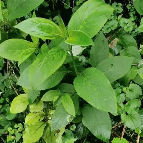 植株高大,高(15)25-45厘米,中上部分枝,叶及苞叶卵圆形至三角状圆形,长10-20毫米,宽7-15毫米,基部通常近于平截,少宽楔形,边缘锯齿急尖至渐尖,有时延长成芒状,两面相当密地被刚毛。