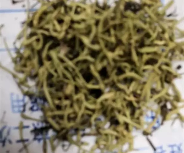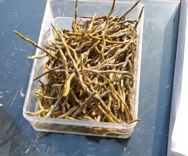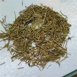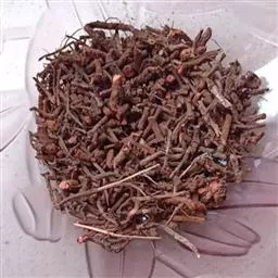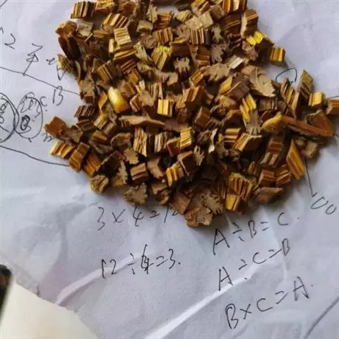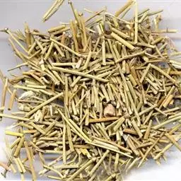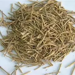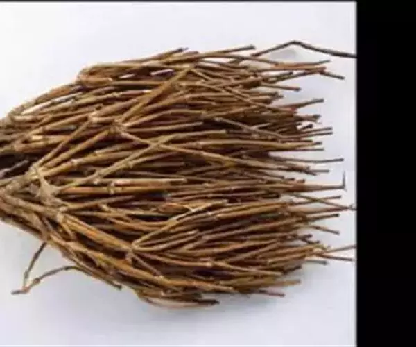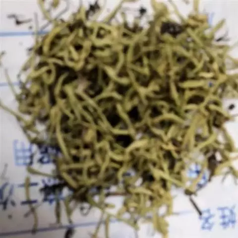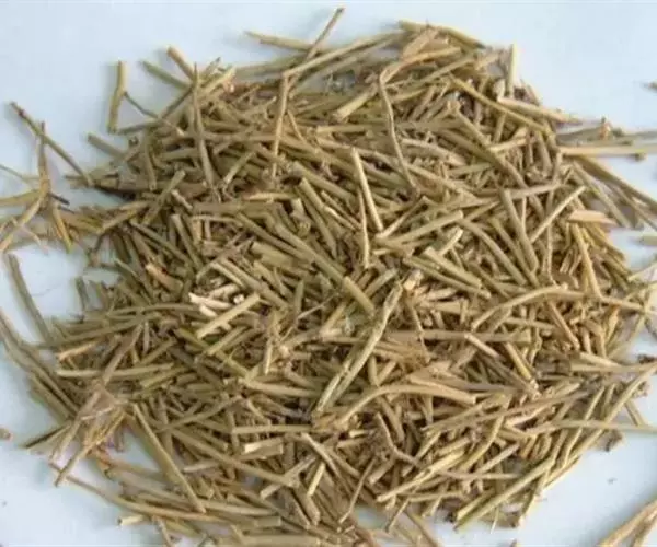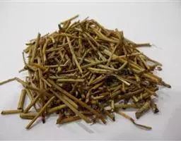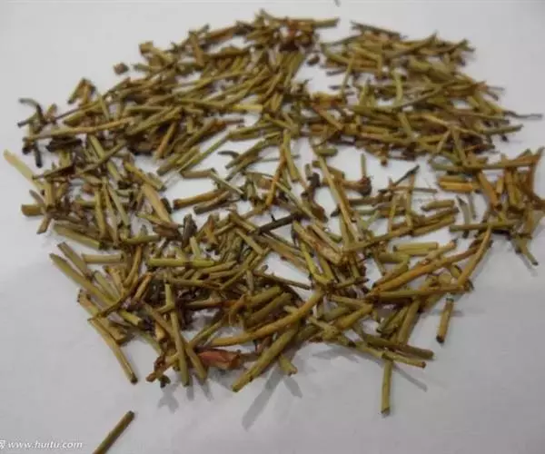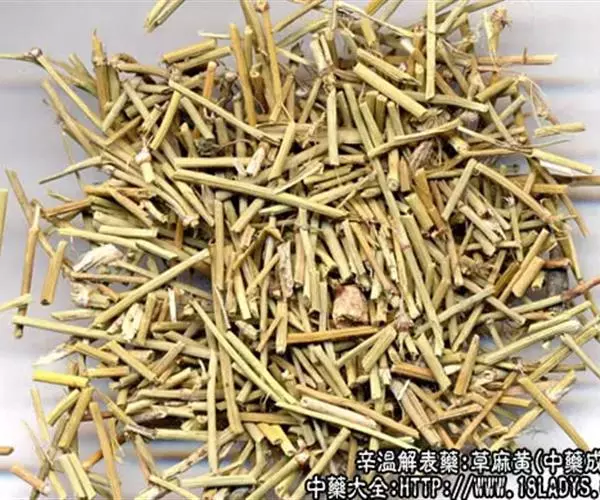 药材来源为麻黄科草麻黄的干燥草质茎。秋季采割绿色草质茎,晒干。呈细长圆柱形,少分枝,直径1-2mm,有的带少量质茎。表面淡绿至黄绿色,有细的纵棱线,触之微有粗糙感。节明显,节间长2-6cm,节上有膜质鳞叶,鳞叶2,稀3,锐三角形,长3-4mm,先端反曲,基部常连合成筒状。质较脆,易折断,折断时有粉尘飞出,断面略呈纤维性,周边绿黄色,髓部红棕色,近圆形。气微香,味微苦涩。