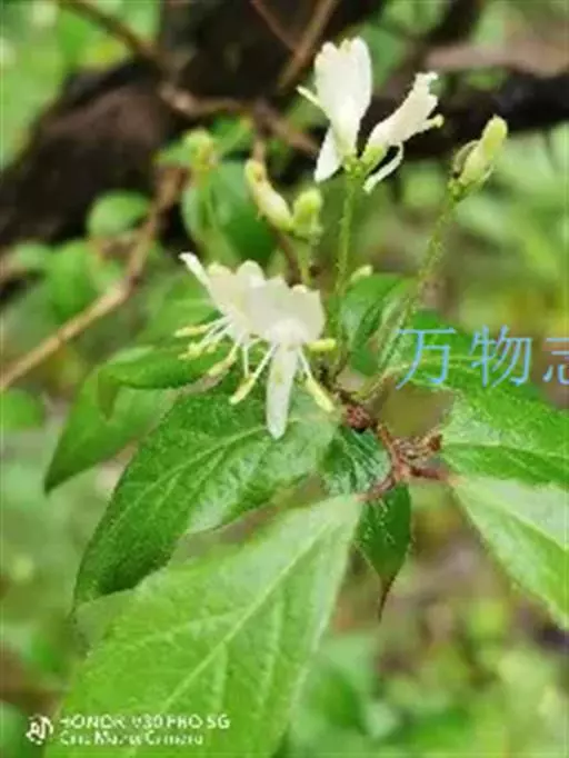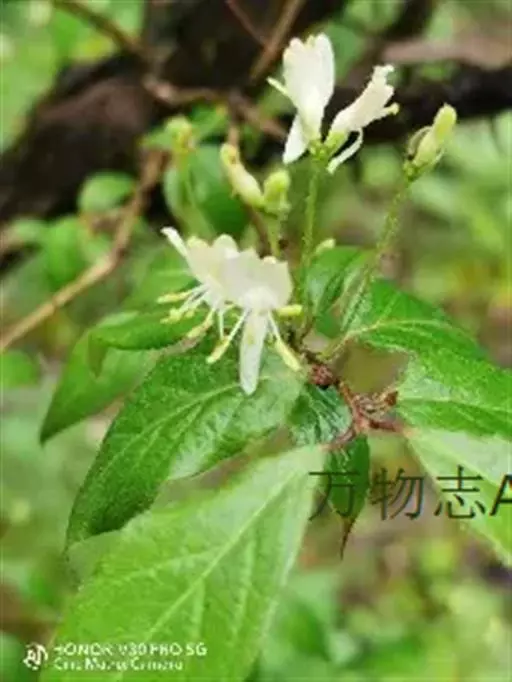 山银花在华南地区野外山林生长。木质藤本,长2~5m。树皮黄褐色渐次变为白色,嫩时有短柔毛。叶对生,…