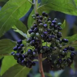 蓝靛果,忍冬科忍冬属落叶灌木植物。壮枝节部常有大形盘状的托叶;冬芽叉开长卵形;叶矩圆形两面疏生短硬毛;花苞片线形无毛,花丝上部伸出花冠;复果蓝黑色稍被白粉椭圆形;花期5-6月,果期8-9月。蓝靛果历史悠久,据传在古时,台江一带苗族就开始使用蓝靓果制靛染衣。蓝靛果分布于中国的东北、内蒙古、河北、山西、宁夏、甘肃、青海、四川及云南等地,在朝鲜、日本和俄罗斯远东地区也有分布。常生长于落叶林下或林缘荫处灌木丛中。蓝靛果喜光喜湿,对土壤的要求不严。主要繁殖方式为扦插、播种和分株繁殖。据《长白山植物药志》记载,蓝靛果味苦,性凉,可清热泻火、散痈消肿、治疗乳痈、肠痈、丹毒等热毒疮疡症。其果实中含有花色苷、胡萝卜素、花青素等化学成分;具有降血压、改善心肌缺血、提升儿童视力、防止皮肤衰老的功效。其果实可鲜食,可制饮料、果酱、果糕和果酒;也是天然的紫红色素,可用于食品添加剂。据报告,俄罗斯已把蓝靓果加工成宇航员专用的饮料。