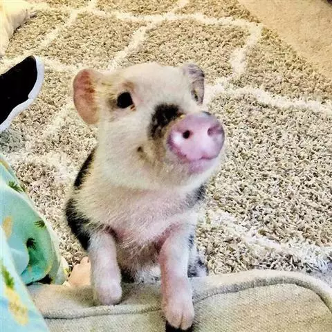 宠物猪,近年来的一个新新词汇,作为猪,在我们国家,过去就是用来吃的。只是近年来,养宠物的越来越多,种类也越来越全、越来越另类,猪,自然而然就成为人们玩赏的宠物了。英国最近流行养迷你猪,这些猪有着小小的蹄子,大大的耳朵,鼻子上有很多褶皱,样子非常可爱。然而,虽然这些迷你猪非常小,但是它们的价格却很高昂。要想拥有一只出生时体重只有9盎司(255克)大小、跟一个茶杯差不多的迷你猪,需要支付700英镑 。