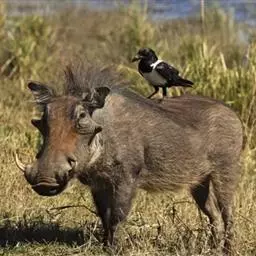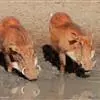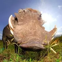 非洲疣猪:也称普通疣猪,体重在50-75千克之间,因眼部下方具疣而得名,在挖土取食时,…