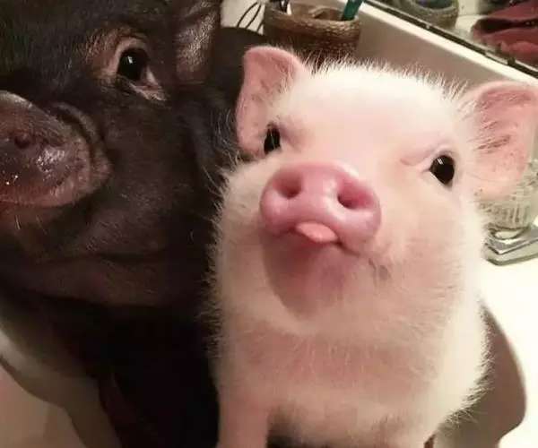 越南大肚猪——这种小猪可能是今天最流行的品种。它们拥有吸引人的外形和驯服的性格。他们夸张的背部和大肚子(其他动物喂得过饱的标志)是完全正常和健康的。它们平均身高大约35厘米,平均体重大约45斤。
