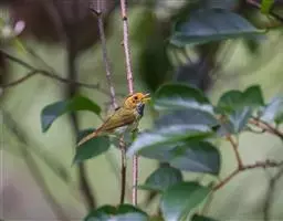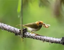 金冠地莺:形态与灰腹地莺相似,上体橄榄绿,前额至头顶渲染亮金黄色;下体几乎纯暗石板灰色,…
