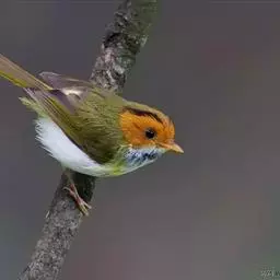 棕脸鹟莺:体长10厘米,是一种色彩亮丽而有特色的莺鸟。头栗色,具黑色侧冠纹。上体绿,腰黄色。下体白,…