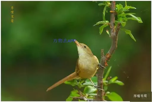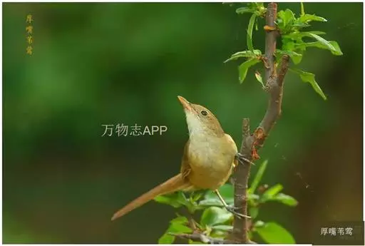 厚嘴苇莺:苇莺科、苇莺属鸟类。额羽松散,羽干伸延;嘴宽阔,基部宽度超过4毫米;嘴须非常发达,…