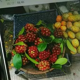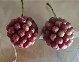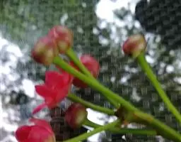 花被片 15~20 枚,暗红色或紫红色,常带有腺点,长 0.8~1.2 公分,宽 0.6~0.8 公分,仅在中间者最大,内及外层者较小:雄蕊多数,排成 3 列,心皮 12~16 枚,紧密排列呈压缩状,花柱锥形,长 0.1~0.2 公分。