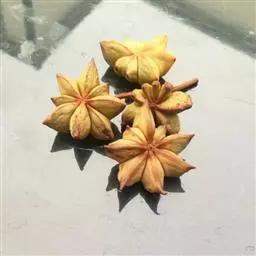 蓇葖果丛呈扁平八角形,由成熟心皮 10~15 枚所组成,每 1 心皮内仅含种子 1 枚;种子略呈长卵形,基部略凹陷。