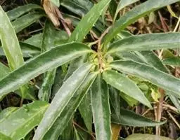 灌木,通常高1-2米,稀达10米。幼枝纤细。叶密集生近枝顶,3-8片簇生,或假轮生,薄革质,狭披针形或狭倒披针形,长5-12厘米,宽0.8-1.2(-2.7)厘米,先端急尾状渐尖或渐尖,基部渐狭,下延至叶柄成明显狭翅,中脉在叶上面稍凹下,在下面突起。