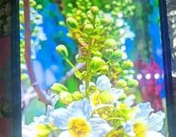 花序有1-4花;花序梗长4.5-20厘米,被柔毛;苞片对生,长圆形、卵形或倒卵形,长5-14 (-23)毫米,宽1.5-8(-10)毫米,被柔毛;花梗长5-10毫米,密被柔毛及腺毛。花萼长4-7毫米,5裂至基部;裂片线状披针形,宽1.2-1.8毫米,边缘每侧有1-2(-3)小齿,被短柔毛。花冠紫色或淡紫色,长3.2-4.5厘米,外面被短柔毛,内面只在上唇之下被柔毛;筒长2-2.8厘米,口部直径0.9-1.3厘米;上唇长6-10毫米,下唇长12-15毫米。雄蕊的花丝着生于距花冠基部1.4-1.6厘米处,长10-11毫米,在基部之上膝状弯曲,向上渐变狭,有少数腺毛,花药长约3.8毫米,下面有疏柔毛或无毛;退化雄蕊着生于距花冠基部1.2-1.5厘米处,长2-4毫米,有疏柔毛。花盘环状,高0:4-0.6毫米。雌蕊长2.4-3厘米,子房及花柱密被短柔毛,柱头长3-4毫米,顶端不明显2浅裂。蒴果长3-4厘米,粗2-3毫米,被短柔毛。种子褐色或暗紫色,狭椭圆球形,长约0.6毫米。花期6-9月。