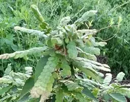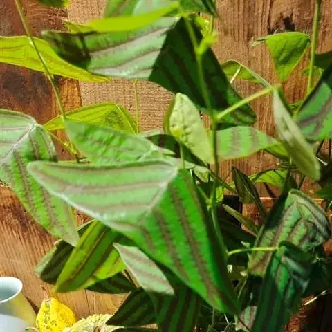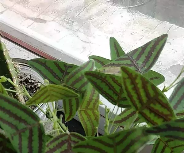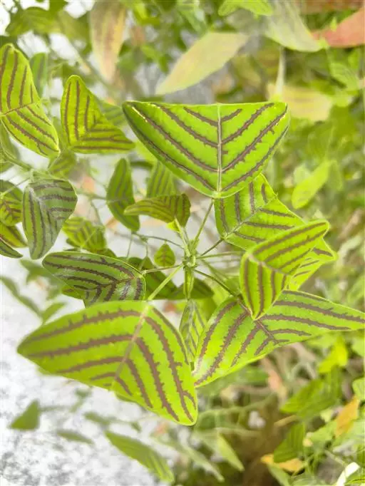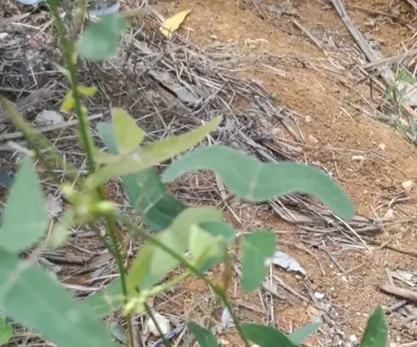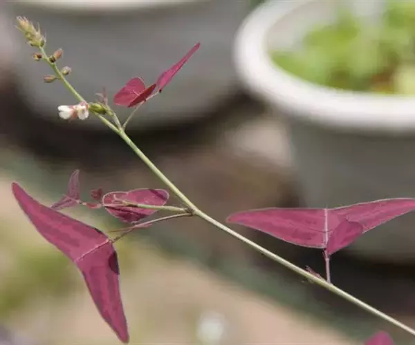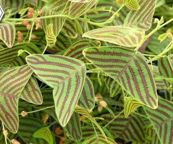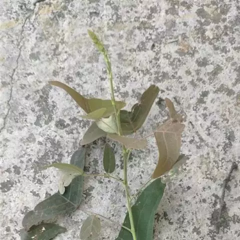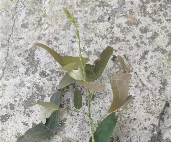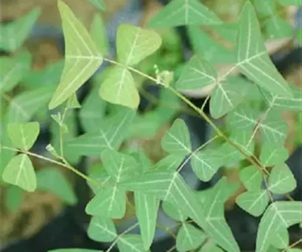 多年生直立草本,高60-120厘米。常由基部开始分枝,技较纤细,上部略被灰色柔毛。叶通常为单小叶,稀有3小叶;托叶刺毛状,长5-6毫米,脱落;叶柄长2-2.5厘米,被稀疏短柔毛;小叶近革质,灰绿色,顶生小叶菱形或长菱形或元宝形,长0.8-1.5厘米,宽5-9厘米,先端宽而截平,近中央处稍凹,基部略呈心形,侧生小叶倒心形或倒三角形,两侧常不对称,长8-15毫米,宽15-20毫米,先端截平,基部楔形或近圆形,上面无毛,下面稍被短柔毛,侧脉每边3-4条,平展,网脉在下面不明显;小叶柄长1毫米。