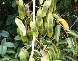 荚果有荚节4-5,椭圆形,荚节长3毫米,宽2毫米,成熟后黑褐色,有网纹,无毛,完全藏于萼内。花期3-5月,果期10-12月。 [1-2]