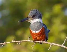 棕腹鱼狗身长38 - 42 cm ,体重305-341 g。主体羽毛蓝色。头顶的冠羽竖起一个小尖峰…