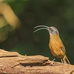 剑嘴鹛:中型鸟类,体长21-22厘米。嘴特别细长而向下弯曲,头顶和头侧烟灰色具长而窄的白色眉纹,…