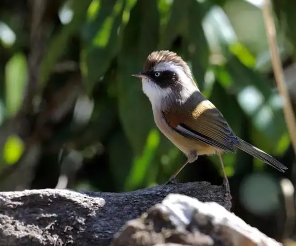 斑喉希鹛小型鸟类,体长14~17厘米。头具羽冠,前额和头顶羽冠金黄褐色,头侧灰黄色具黄色眼圈。…