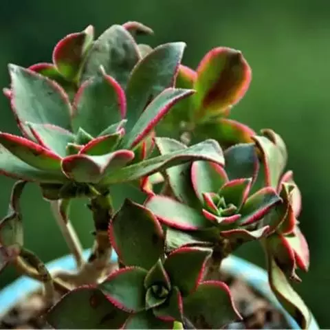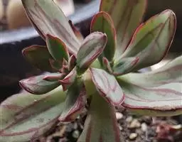 红缘莲花掌属蔷薇目、景天科植物,原产大西洋的加那利群岛。质厚,蓝绿色,被白霜,叶缘红褐色。聚伞花序,…