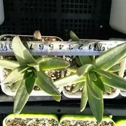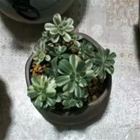 此品种经常和灿烂的混淆,实为两种不同品种。灿烂(Aeonium percarneum f. variegata)叶片更为宽厚,成株尺寸也较大,可达20-30厘米,锦斑明显。