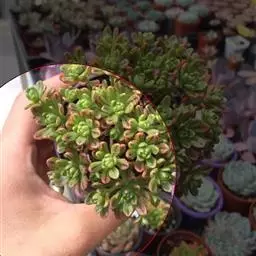 戴冠曲 景天科莲花掌属多肉植物,为亚灌木分枝多,叶片生长在茎端和分枝顶端集和成莲座叶盘,叶片倒卵…
