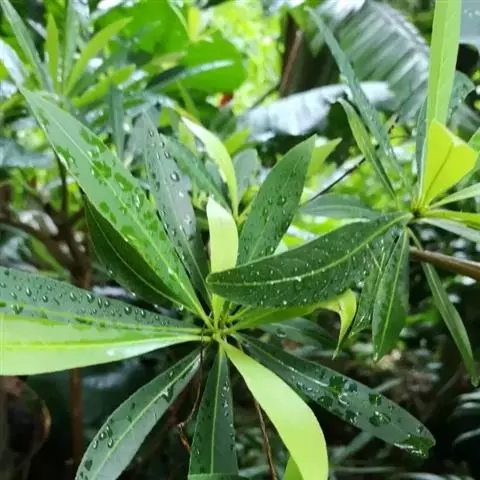 海南杜英,属杜英科杜英属的常绿小乔木。树冠整齐成层,枝条无毛。叶子聚集在顶端生长,狭披针形或倒披针…