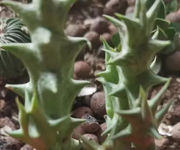 龙角(Caralluma burchardii),萝蘑科、水牛掌属植物。产于加那利群岛和摩洛哥。多年生肉质草本,植株低矮分枝多。主要生长期为春秋