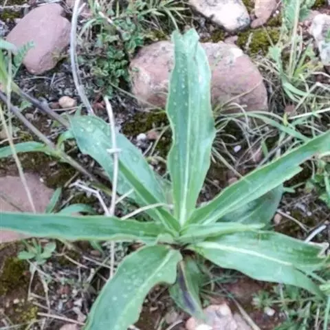 基生莲座丛叶缺;茎生叶5枚、稀6枚轮生,下部疏离,上部密集,线状匙形,先端钝,基部微狭缩,边缘粗糙,叶脉在两面均不明显或仅中脉在下面明显,下部叶小,疏离,长2-3毫米,宽1-1.5毫米,上部叶大,逐渐密集,长5-7毫米,宽1.5-2毫米。