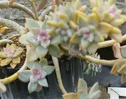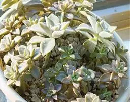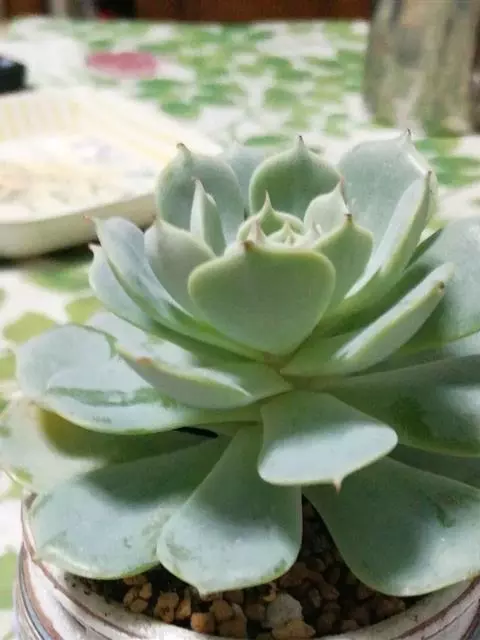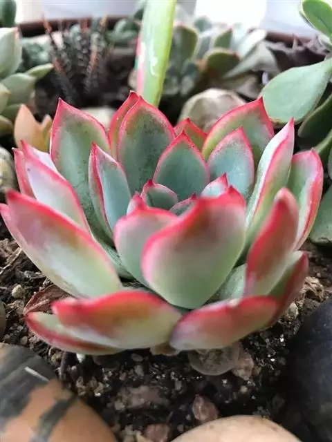 大和锦是景天科拟石莲花属的多肉植物。肉质叶排成紧密的莲座状,广卵形至散三角卵形,背面突起呈龙骨状,…