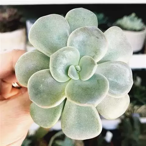 白霜,景天科景天属小型多肉植物,叶子绿色肉质会有白霜覆在表面。