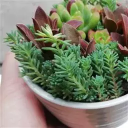 薄雪万年草别名矶小松,景天科景天属多年生草本植物,其细小的蓝绿色棒状叶片环绕生长于茎端,…