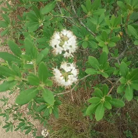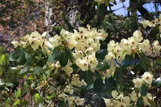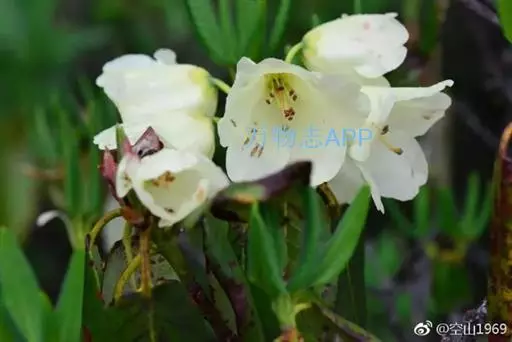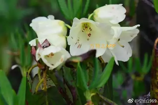 与黄杯杜鹃的主要区别:花冠纯白色,叶长卵形。花期5-6月。